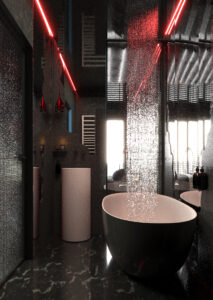 Do 11:00ANGELS SPA – RED – Zmysłowy apartament stworzony dla wyjątkowych chwil we dwoje. Industrialna elegancja w odcieniach czerni i czerwieni, prywatne SPA z wolnostojącą wanną, designerskie oświetlenie i odważne detale tworzą atmosferę luksusu i intymności. To przestrzeń, w której relaks spotyka namiętność, a każda noc staje się niezapomnianym doświadczeniem.