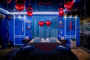 Do 11:00Grey Aqua Secret Room – BLUE to apartament, gdzie zmysły budzą się do życia, tworząc atmosferę namiętności i bliskości. Centralnym punktem jest huśtawka, na której razem odczujecie delikatne kołysanie, dodając nuty ekscytacji Waszemu pobytowi.
