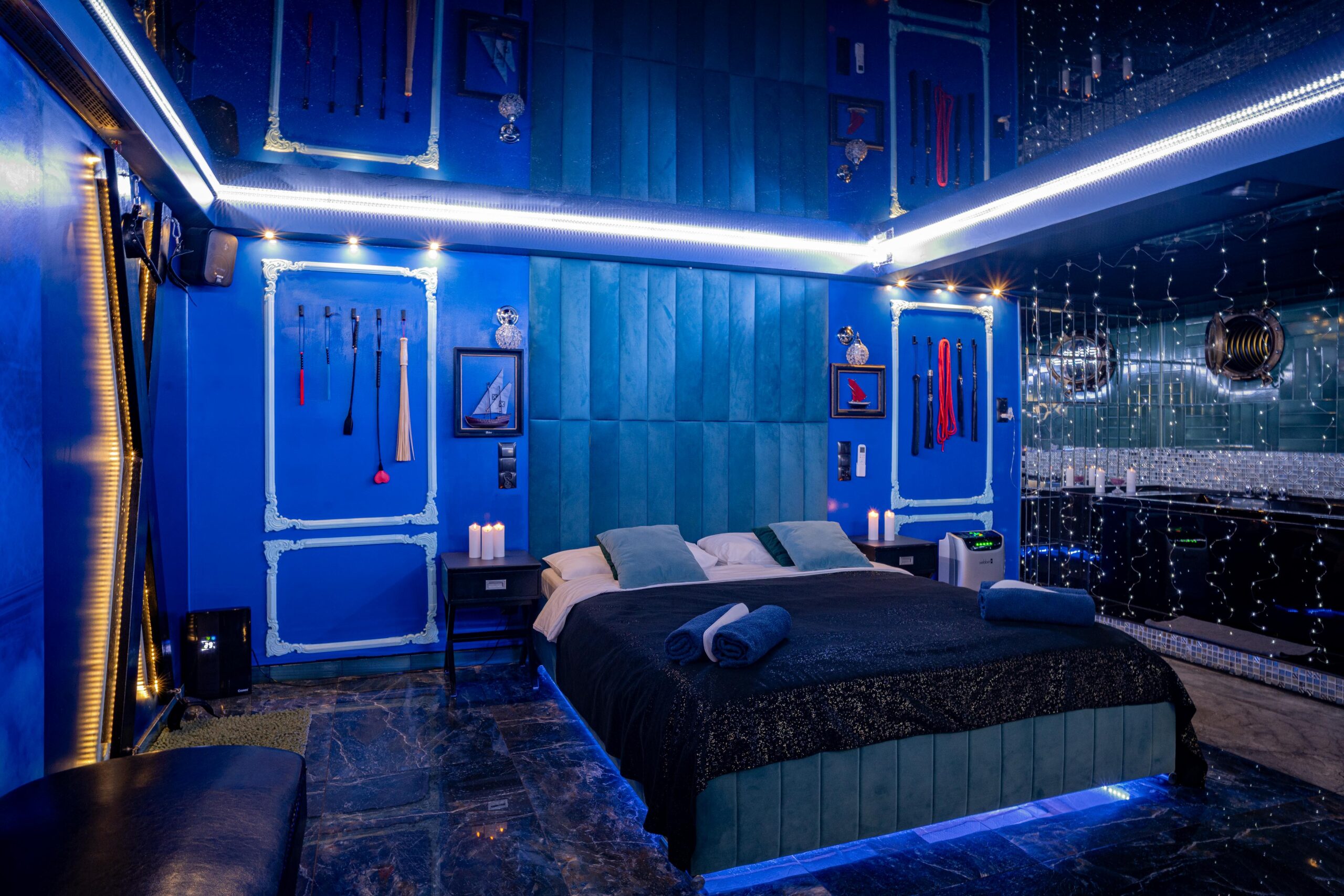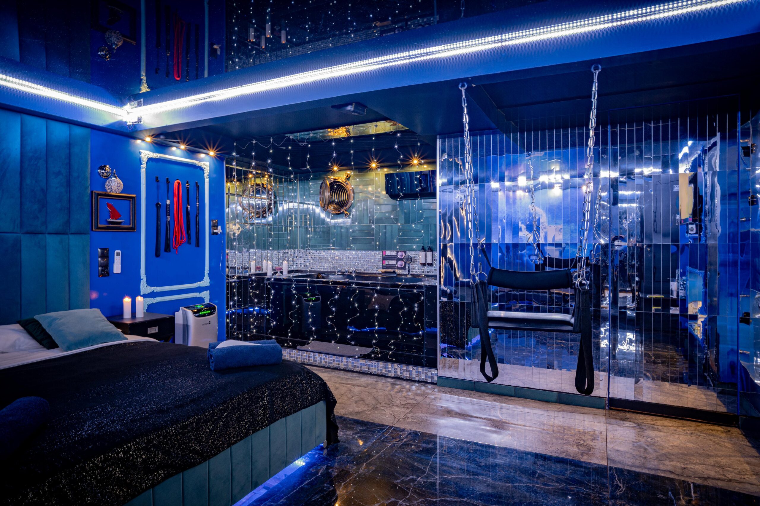 Do 11:00Grey Aqua Secret Room – BLUE to apartament, gdzie zmysły budzą się do życia, tworząc atmosferę namiętności i bliskości. Centralnym punktem jest huśtawka, na której razem odczujecie delikatne kołysanie, dodając nuty ekscytacji Waszemu pobytowi.